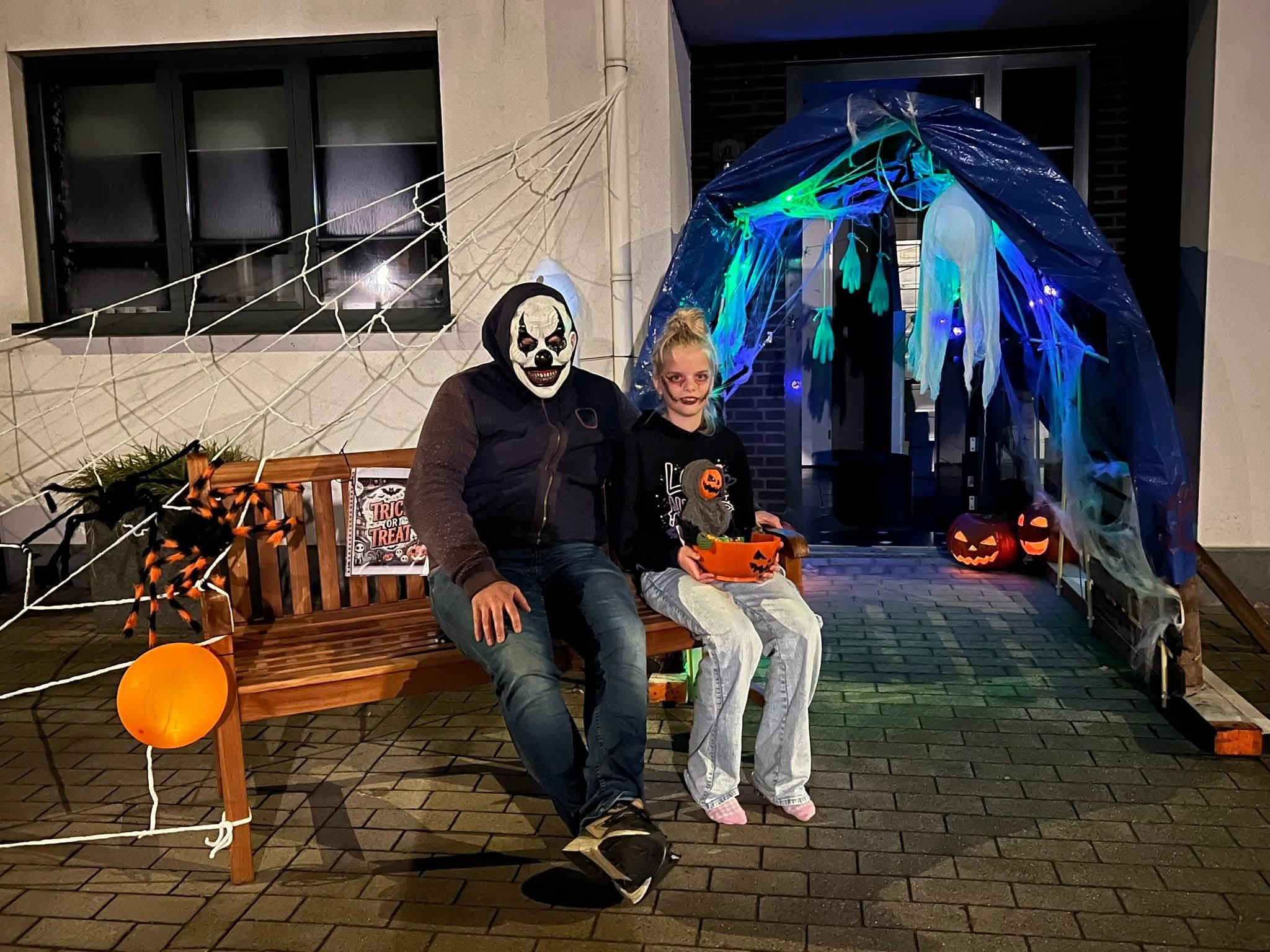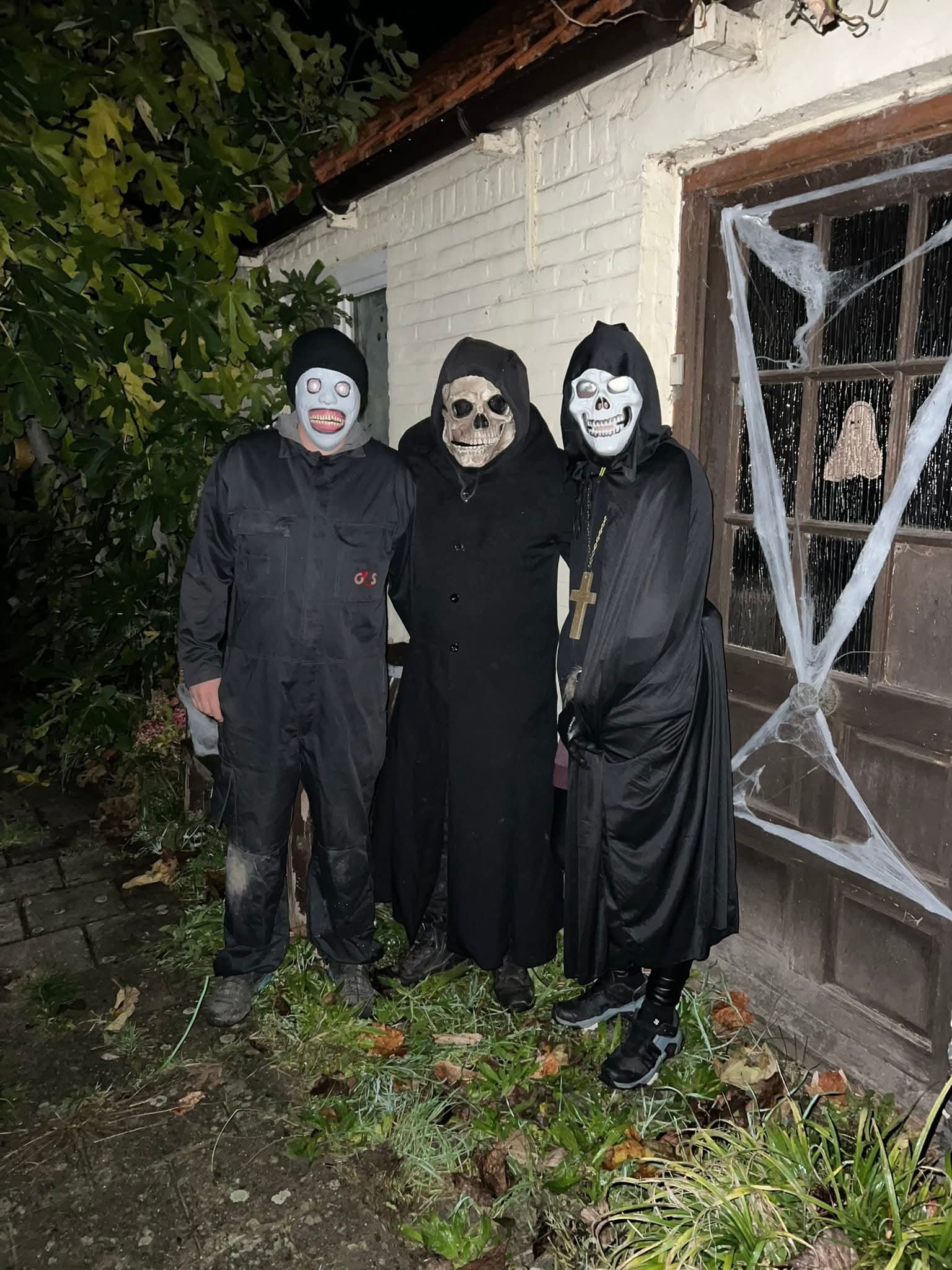 Familie foto voor aan de muur, nog een Halloween schaduw van “dn Fotograaf” , ut was weer geslaagd, graag tot in 2026, Griezelen op de Graauw !