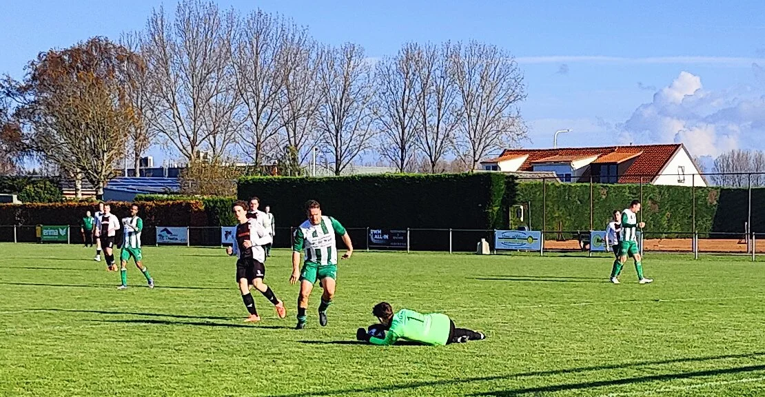 En dan sloeg het noodlot toe: Na een klein half uur speelden we de bal even terug… in de voeten van een Steen speler die zo naar de goal kon lopen. En een paar minuten later bij een aanval werd de bal weer zo ingeleverd en was er niemand die hier nog wat aan kon doen. Vervolgens had Tijn de bal niet klemvast op een goede redding en stonden we met nog een kwartier op het bord met 1-6 achter. Geflatteerd wellicht maar de wedstrijd was gespeeld. In een allerlaatste poging wilden we nog een extra eretreffer maken maar ook dat werd ons belet, al zaten we daar wel dichtbij.