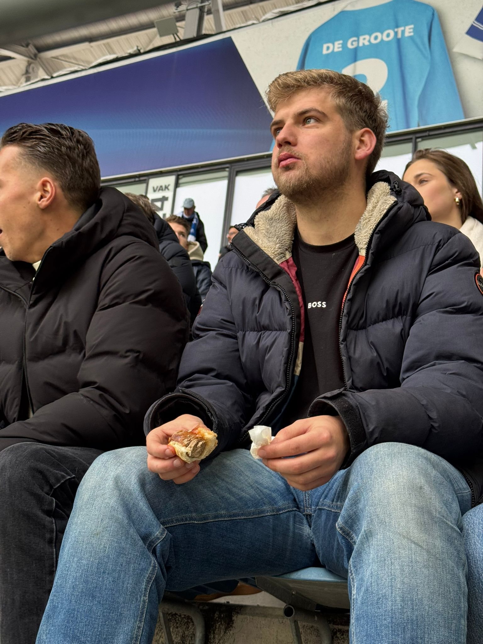 Gillis met een broodje, ziet met lede 👁️👁️aan dat “dn derby” niet kan bekoren, typische potje in rechterrij, waar eigenlijk dn Antwerp ( met Nederlanders Kerk en Janssen & trainer Joseph Oosting ) het meeste aanspraak maken op de 3 punten, ze winnen dan ook met 0-2.