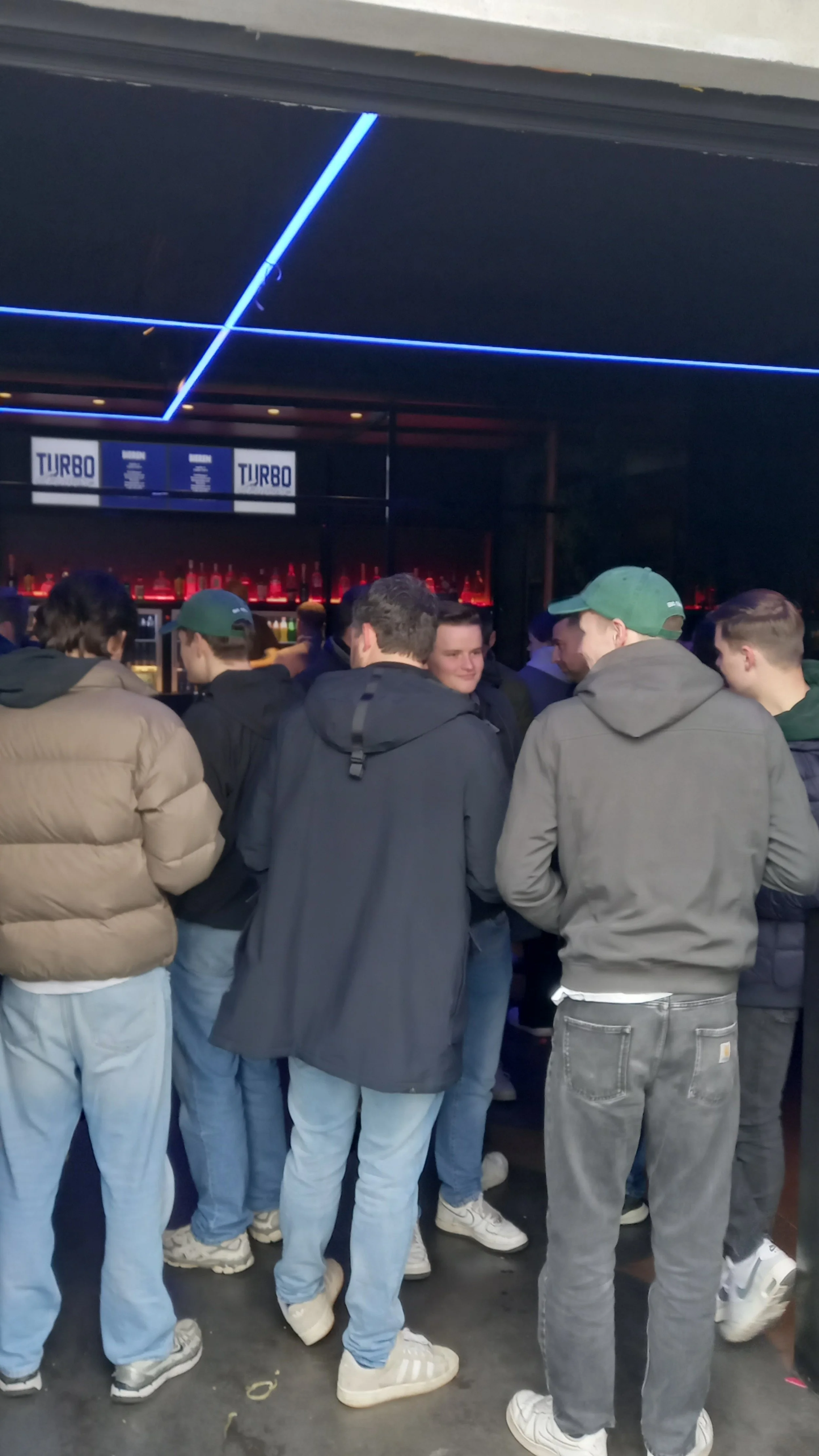 In de rust vinden Alex en Pieter dan toch “warme koffie” alles per bankcontact, veel merci !! Zo gaan we na de wedstrijd, weer de bus in, dames 🚗 rijdt weer naar de Graauw, de 🚌passagiers knappen op bij de werme bus kachel, op naar de 🤶🤶🤶🤶🤶🤶🤶🤶🤶🤶 Markt, uit de bus lopen we centrum in, maar niet alvorens we weten : 🕰️ 21.00 u 🚌! En dan nu in Colonne Gegroepeerd naar de “Omer Bar”