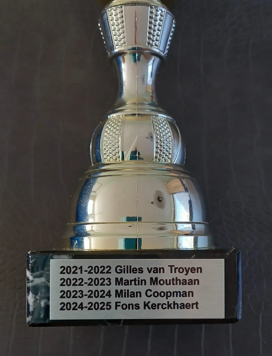 We kenden dit jaar een 4 tal kanshebbers, zij hadden ook allen 3 x jes, mooi was > ieder had prijs > De Beker gaat voor een jaar naar “Constante Factor Fons Kerckhaert” Baudy - Bryan - Johan, maakten het kwartet compleet.