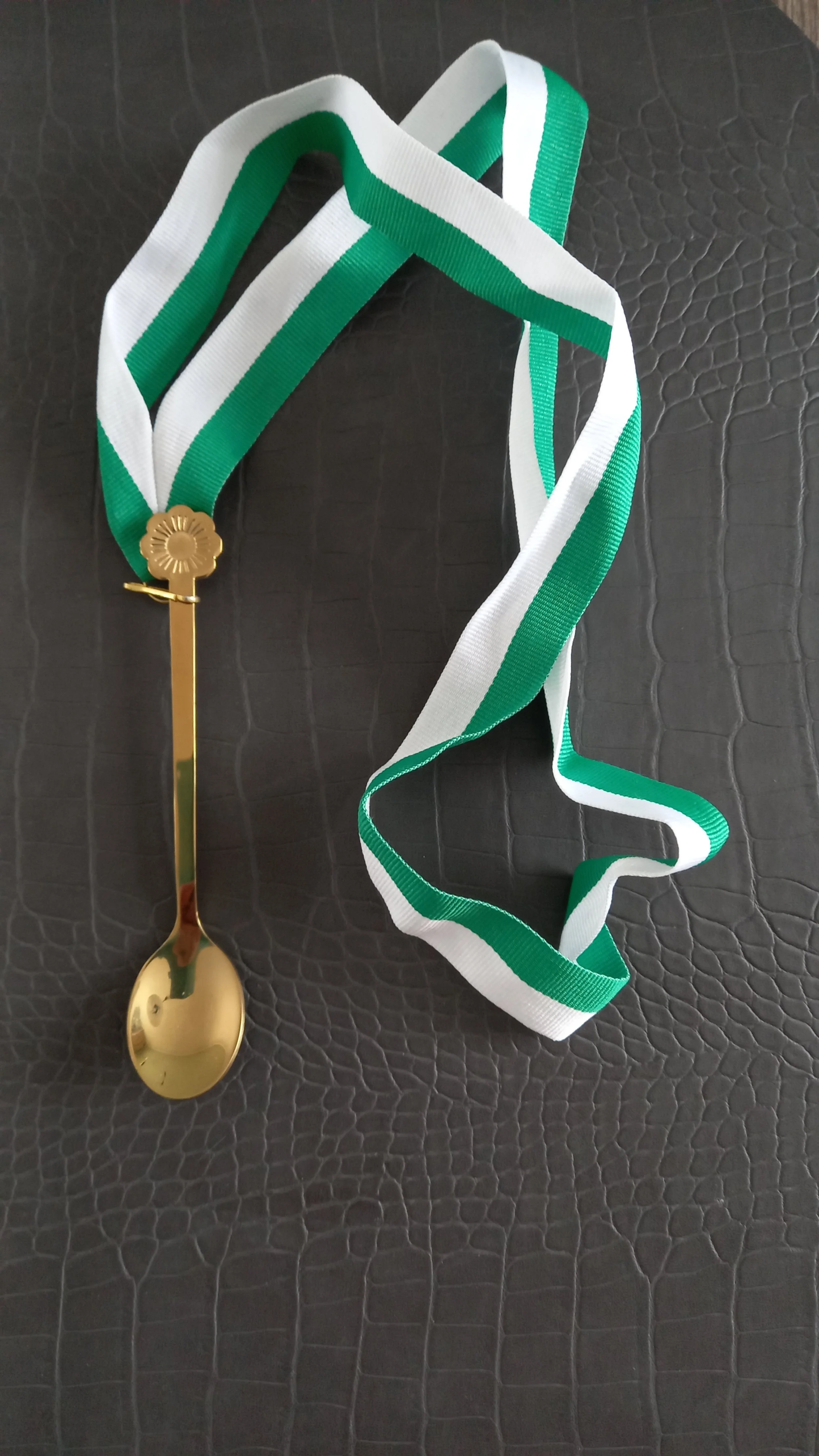 De met goud vergulde, dessert lepel, clubkleuren Sjerp, helemaal top > Proficiat: Baudy - Bryan - Johan