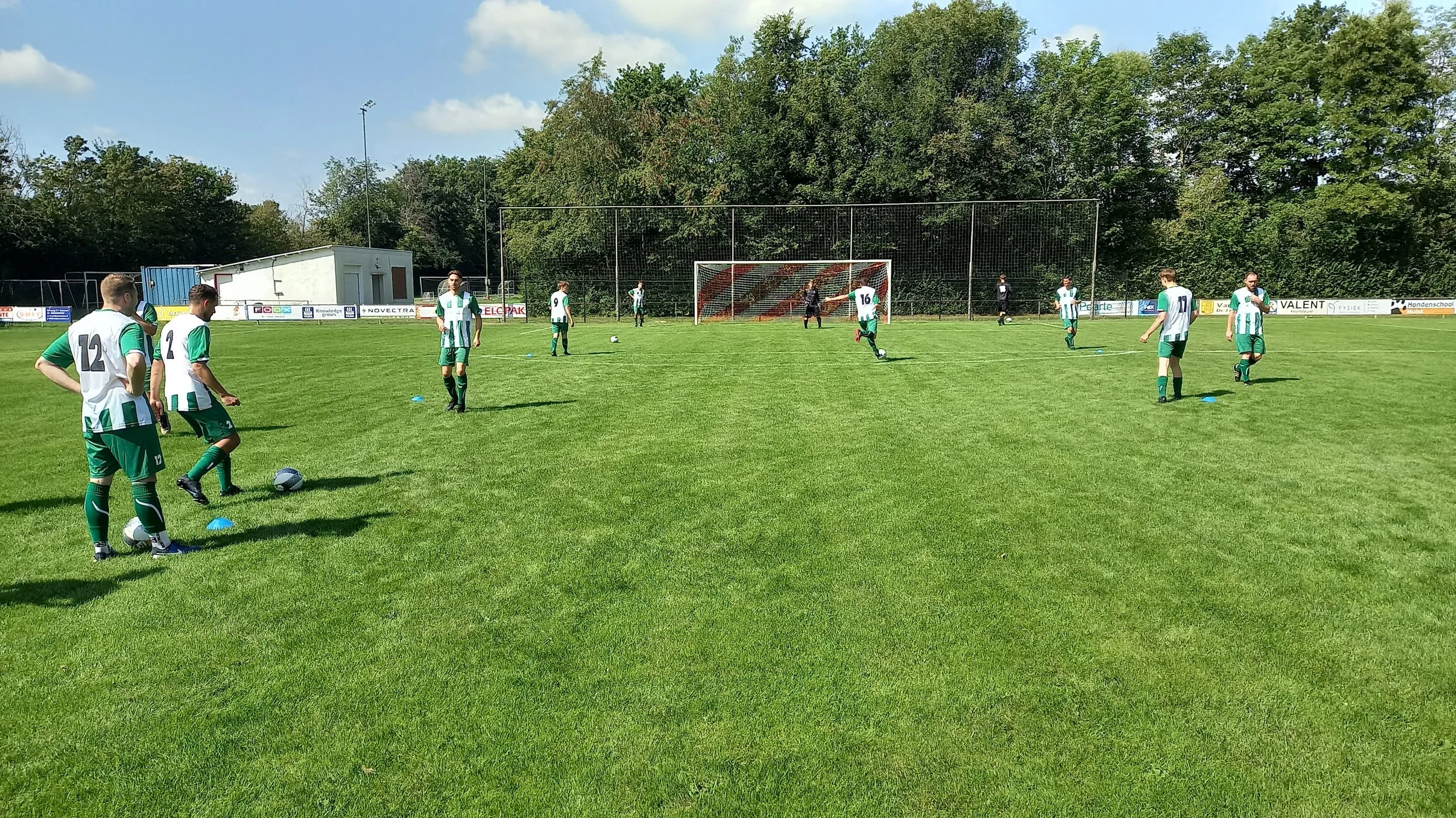 De start is om 12.00 u en moet zeggen onze afgesproken “aanloopfase” pakt goed uit, we zetten “hoog druk” wat de nodige intensiteit ( heftig woord in de 1e match ) in deze wedstrijd brengt, hierdoor scoort Cas na een mooie actie ( rond minuut 22 ) 0-1. een goede 15 minuten later ( minuut 38 ) scoort Job 0-2 !, zo net na de 1e rust, een vervelend en pijnlijk moment ( speler van Clinge komt ten val, valt ongelukkig “schouder uit de kom” Dit is een pijnlijke kwestie, vraag ut Niels, en houdt je wel even uit de running, maar positief ( betreft Niels, hij is erbij om te vlaggen )